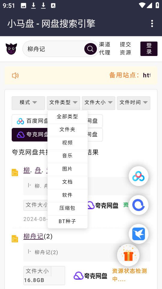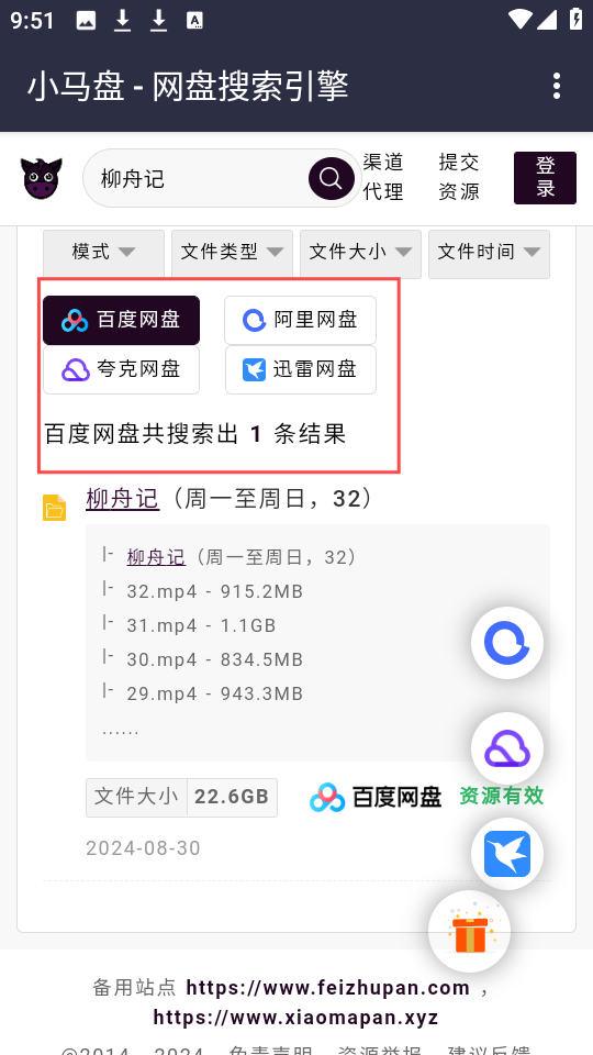 4、紧接着页面下方会呈现来自多个网盘平台的搜索结果,其中包含四种主流的网盘模式。