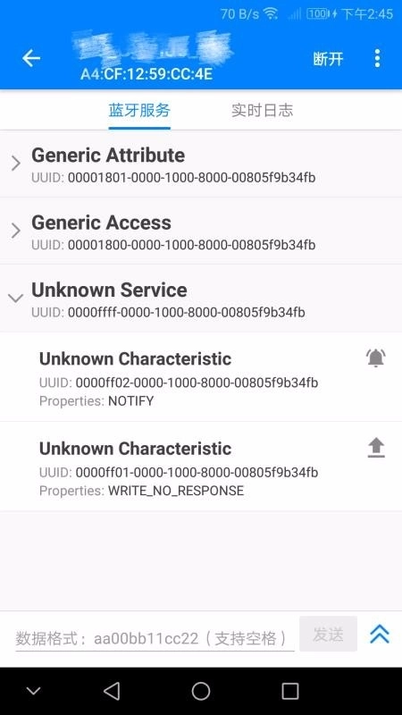 4、连接后,树形结构会清晰列出所有服务、特征的UUID以及特征属性,能够便捷地对特征执行读写操作、开启或关闭通知功能、设置MTU值等操作。