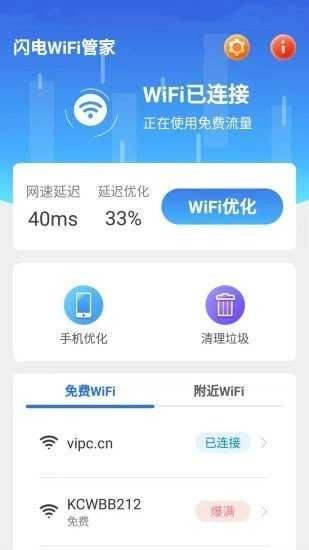 闪电WiFi管家是一款实用的手机端免费WiFi工具应用,具备优化功能。打开这款软件后,你可以查看周围的无线网络,它能帮助用户更智能地连接WiFi网络,有需要的朋友可以使用。