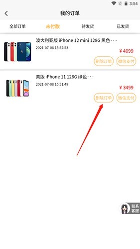 3、点击删除订单按钮;