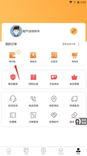 2、点击选择待付款按钮;