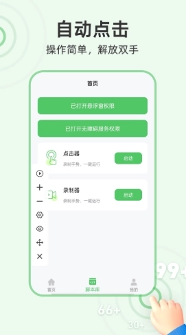 半自动点击器要实现模拟点击功能,需要获取辅助功能权限,不过它不会获取您的隐私信息。