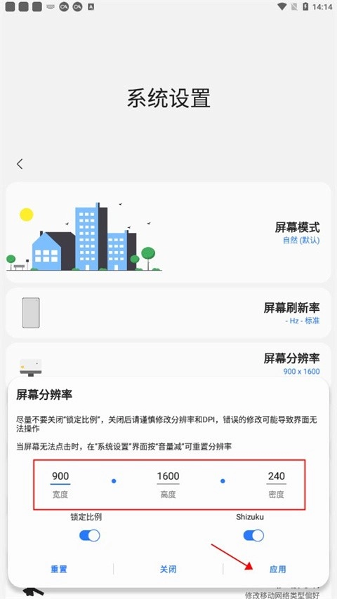 3、支持设置宽度、高度与密度等参数,完成设置后点击应用按钮即可生效。