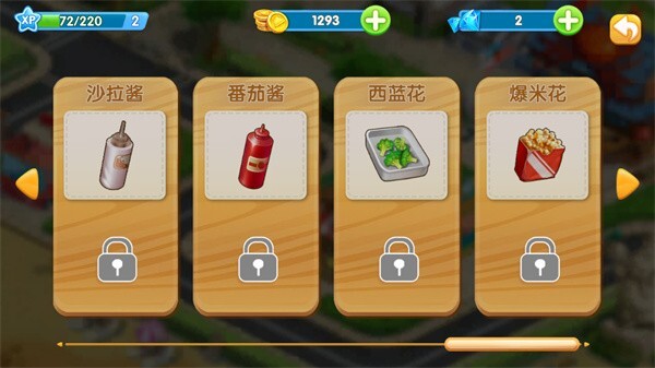 玩过前几关的小伙伴都清楚,一开始我们手头的食材只有饮料、培根和汉堡。等店铺收益慢慢涨起来、等级逐步提升后,鸡排、西兰花、爆米花,还有沙拉酱、番茄酱这类酱料才陆续解锁。食材种类变得丰富了,客人能选的东西才更多,咱们的顾客回头率自然也能跟着往上提。
