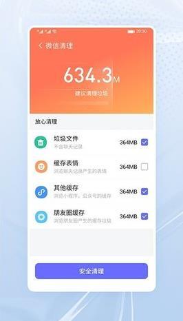 2、支持内存清理、微信专清、手机加速等丰富功能的使用。