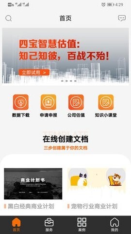 主打的四宝功能涵盖数据、申请申报、公司估值以及知识小课堂这几个方面。