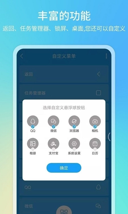 3、不存在任何广告,并且完全免费使用,能够拖拽调整悬浮球的位置,软件体积十分小巧,还支持返回、任务面板和电源键等功能操作。
