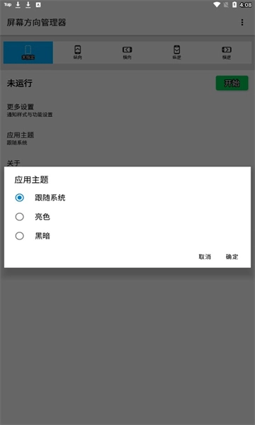 3、接着打开软件,就能找到屏幕方向的设置选项。当前这里默认的是系统自动的屏幕方向,你可以依据自身需求,选择强制将屏幕设置为横屏或者竖屏模式。