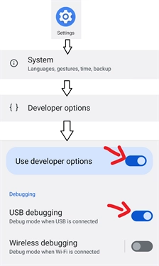 2、启用“开发者选项”和“USB 调试”