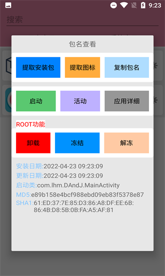 5、还支持一键启动应用,快速提取图标,复制应用包名,以及查看应用活动等功能