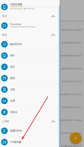 2、把弹出来的栏目滑动到最下方,点击FTP服务器