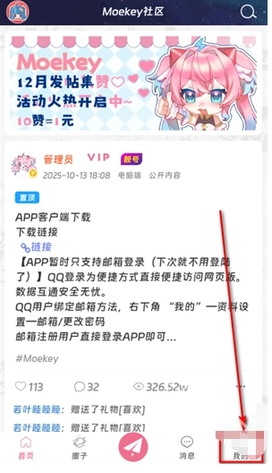 Moekey支持邮箱和QQ这两种主流登录方式,有助于降低用户的加入门槛。用户在发布内容时,能够添加#coser、#cosplay等多个相关标签,还可以选择内容的公开范围,整体流程简洁直观,能有效鼓励用户积极分享。