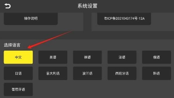 3、向下滑动选择语言,此处我们选择中文,系统支持多种语言,可根据自身需求进行挑选。