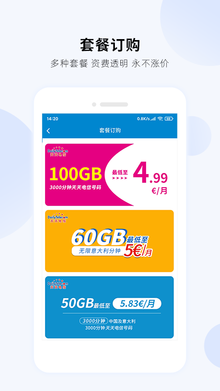 在意大利生活或旅行的华人朋友,如今能借助天天电信手机营业厅便捷地打理通讯服务啦。这款为当地用户量身打造的应用,具备实时话费查询、流量监控、套餐变更等核心功能,助您告别语言不通和营业厅排队的困扰;界面简约清晰,所有数据每30秒自动更新,保证您看到的余额与剩余流量始终是最新情况;特别设置的双语切换功能,就算意大利语不太熟练也能顺畅操作。现在注册还可领取新用户专属流量礼包,感兴趣的话就赶紧来试试吧!