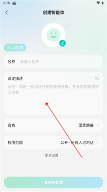 3、输入名称、设定、选择音色等,点击发布即可
