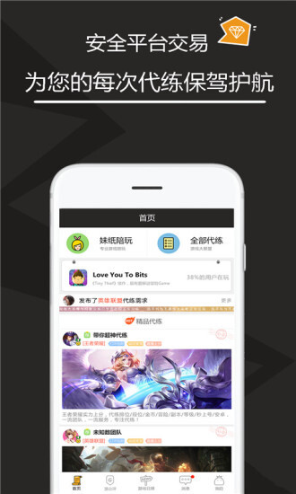 《多多代练》是一款帮助同游戏玩家找到代练的社交应用——如果你在当前段位卡了太久,想提升却没头绪,不妨找位大神带你上分;要是独自打游戏时想找个伴聊聊天,也能来这里。毕竟这儿是真正的玩家聚集地,想在游戏里结识志同道合的兄弟,就快来试试吧!
