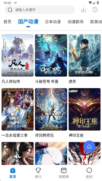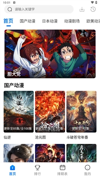 1、在软件的首页,我们可以看到国产动漫、日本动漫、动漫剧场、欧美动漫等多个板块。