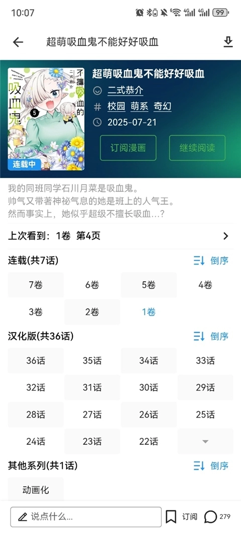 6、对于喜爱的漫画,还能进行订阅操作,一旦订阅的漫画有更新,就能第一时间收到提醒;