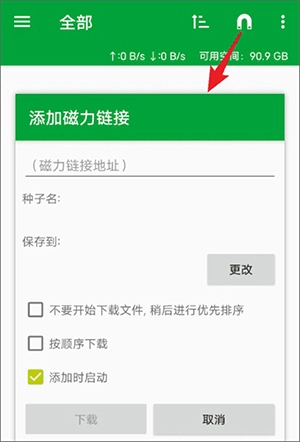 3、粘贴磁力链接或种子文件,即可添加任务。