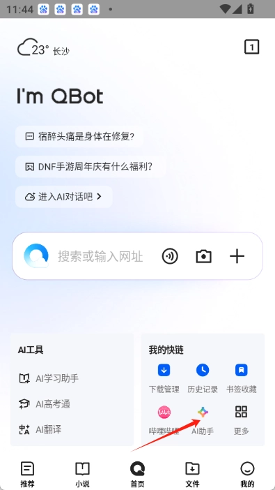 1.升级腾讯QQ浏览器至v19.0.0.0073版本或以上,打开QQ浏览器后,点击右下角ai助手