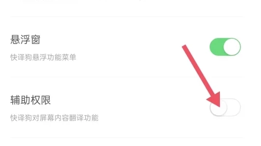 :点击右上角人像图标 → 「隐私设置」→ 「应用权限」→ 开启「辅助权限」,为快译狗、OCR识别、自动翻页等功能提供底层支持。
