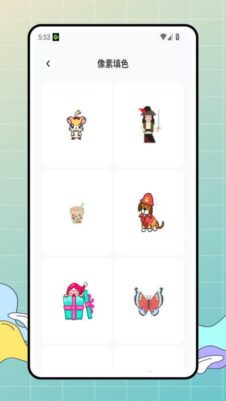 3、像素涂色功能借助数字填色的形式,使用户在惬意完成创作的过程中,也能够提升色彩感知能力。