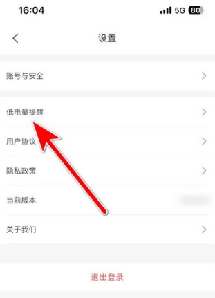 2、在页面中点击【低电量提醒】选项。