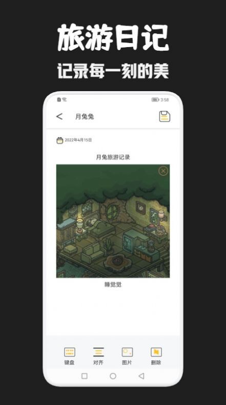 1、在月兔旅游里,你可以实时记录自己的旅程,还能上传文字和图片文件,是不错的选择。