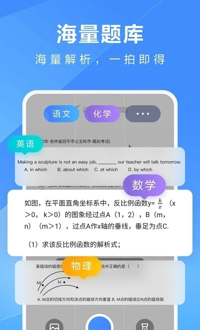 3、运用AI算法为用户提供精准的搜题结果,并推荐相似题目,促进举一反三的学习效果。
