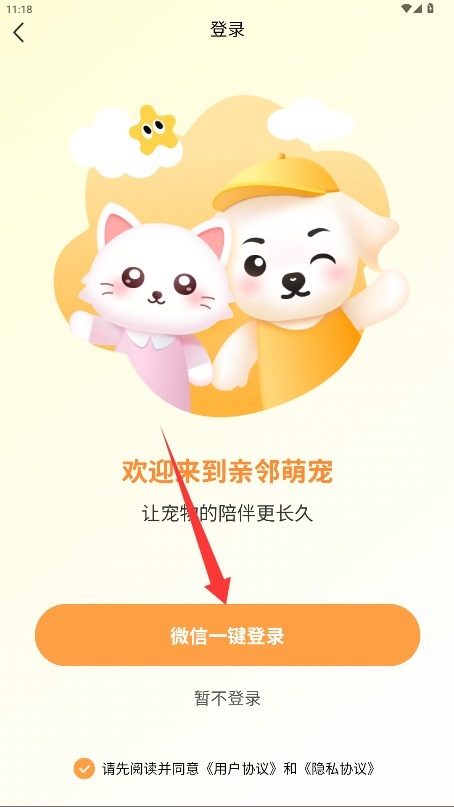 首次使用时,请仔细阅读用户服务协议和隐私政策,确认无误后点击同意按钮,即可进入应用。