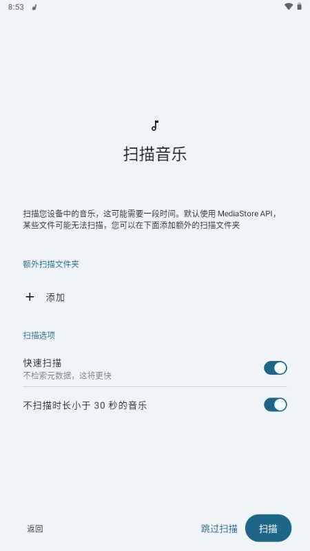 3.进入首页一键扫描本地音乐。