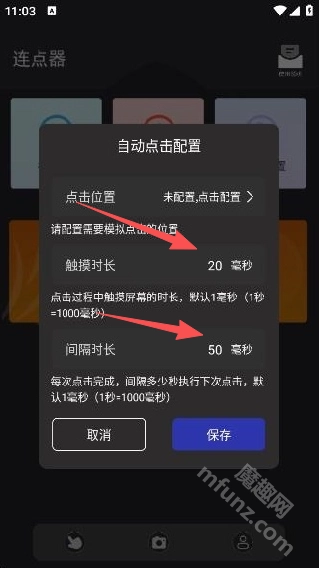 绿点连点器是一款让你解放双手的安卓快捷设置连点的软件。绿点连点器操作简单易上手,适用于多种场景,比方说抢票、抢优惠券、收蚂蚁森林能量、游戏挂机任务等,都能通过它来轻松实现。绿点连点器手机版支持自定义设置点击配置参数。包括点击时长、间隔和链接地址等,全都可以根据你自己的需要来设置!