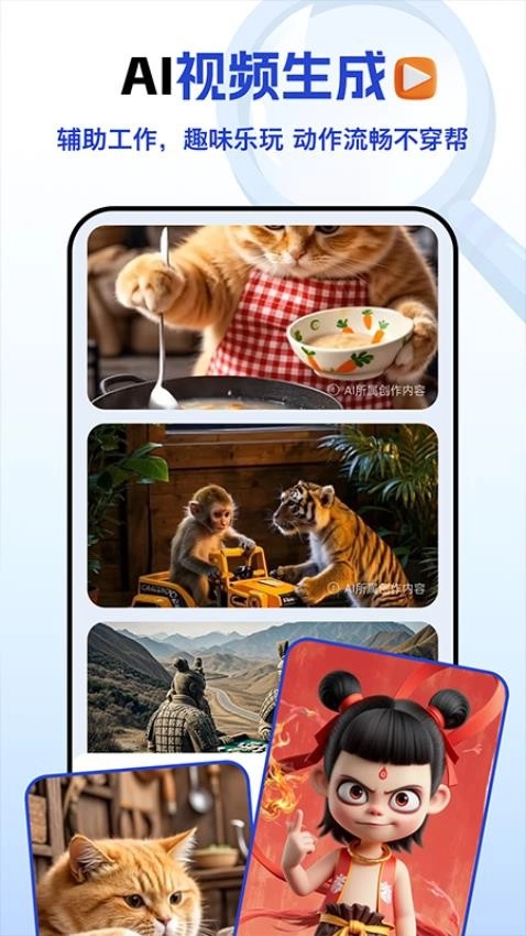 - AI视频:根据文本内容,自动生成相符的视频。