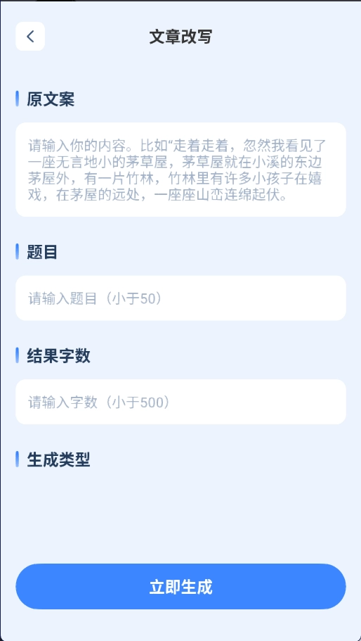- 文章改写:根据文章内容,智能改写生成重新编辑的文章。