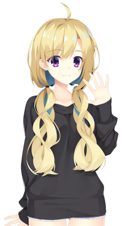 - 外貌:总是穿着一身黑衣扎双马尾的金发紫瞳少女。