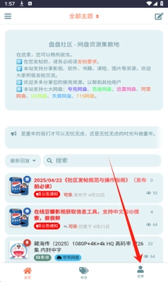 1、打开盘盘社区进入首页,点击右下角【我的】