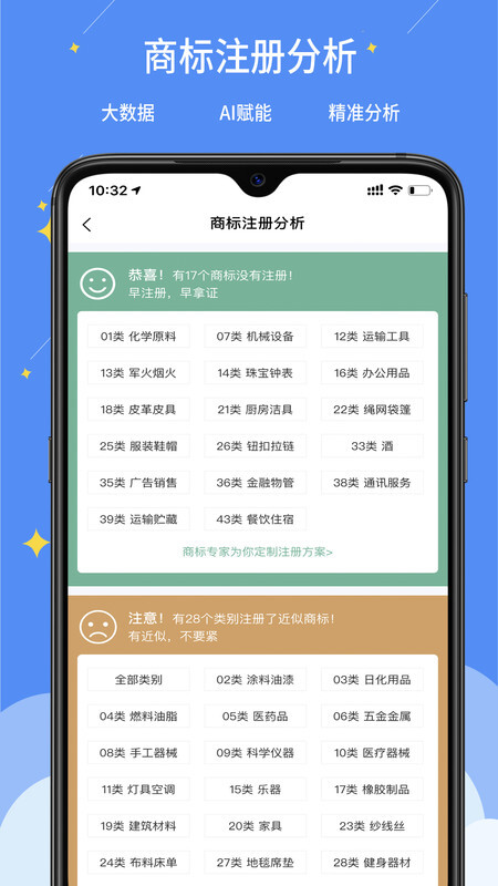 1、【商标查询】商标智能查询服务涵盖:商标近似查询、商标注册查询、商标查询注册及自助查询功能。其中,商标近似查询可提升商标相同比对的精准度,实现精准筛选;同时还提供商标小类查询、商标交叉分类查询、商标近似警告、商标注册风险评估以及商标注册查询提示等服务。