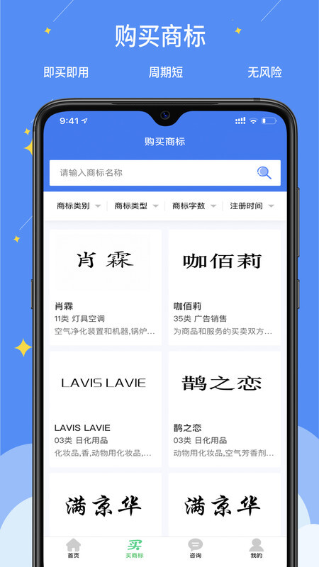 3、【商标转让】海量优质商标资源,一手商标渠道资源,商标商城内商标买卖信息详实!商标商城支持海量资源在线查询、查找与筛选,提供在线公证服务,平台担保交易,作为国家备案商标机构,信誉可靠、服务优质,为您的品牌发展保驾护航。