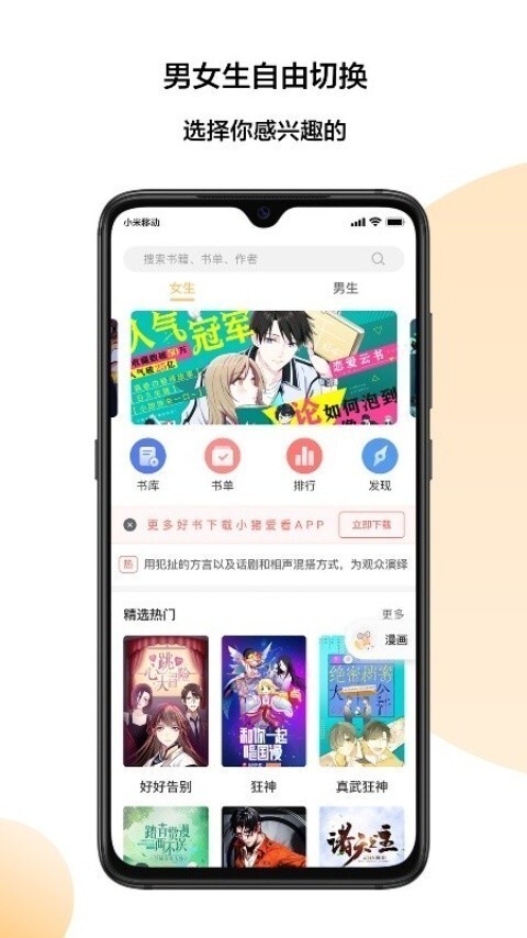 2、男频、女频、出版三大频道清新上线,我们会依据用户的喜好,为大家精选海量优质好书。