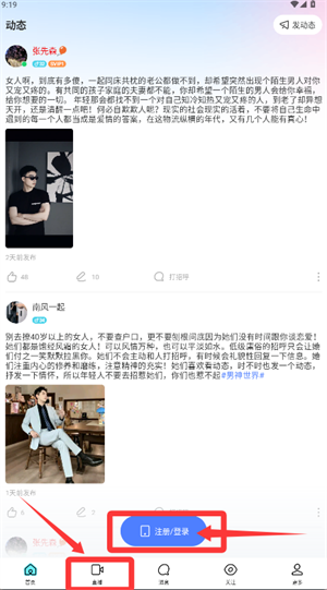 2、点击下方导航栏的直播入口,接着选择注册或登录按钮。