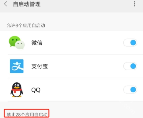 1.对MIUI系统而言,正常情况下,如果用户不进行设置,QQ、微信、支付宝、小米健康等这些软件是默认自启动的。我们需要打开『手机管家』,进入『应用管理』,选择『权限』,找到并进入『自启动管理』。在自启动管理里可以看到哪些是自启动的。然后我们需要禁止一些自启动应用即可达到省电的目的。