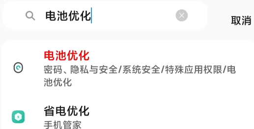 2.打开『设置』,搜索『电池优化』,进入第一个
