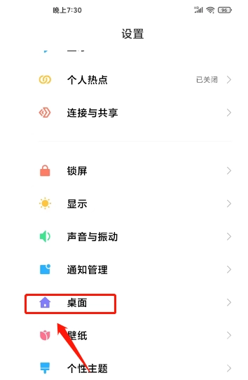 1.进入设置界面,点击“桌面”选项。