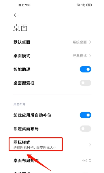 2.进入桌面界面,点击“图标样式”选项。