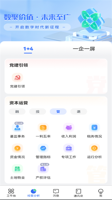 “广数科”是一款针对移动客户端开发的协同办公与数字化管控应用。它具备便捷的模块化操作设计,核心功能涵盖新闻公告、流程审批、经营决策、即时通讯等(系统会依据用户权限的差异呈现对应的功能模块)。该应用操作简便易上手,能够有效提升办公效率,助力用户迈入移动办公的全新阶段。