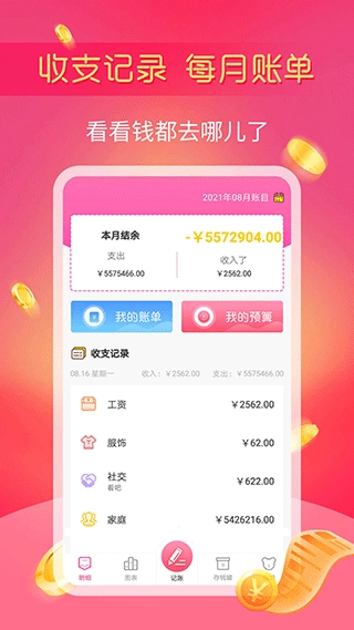 - 随时随地记账,操作简便,支持自定义收支分类。