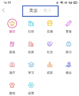 2、在记账页面中选择“支出”或“收入”,系统默认为支出。