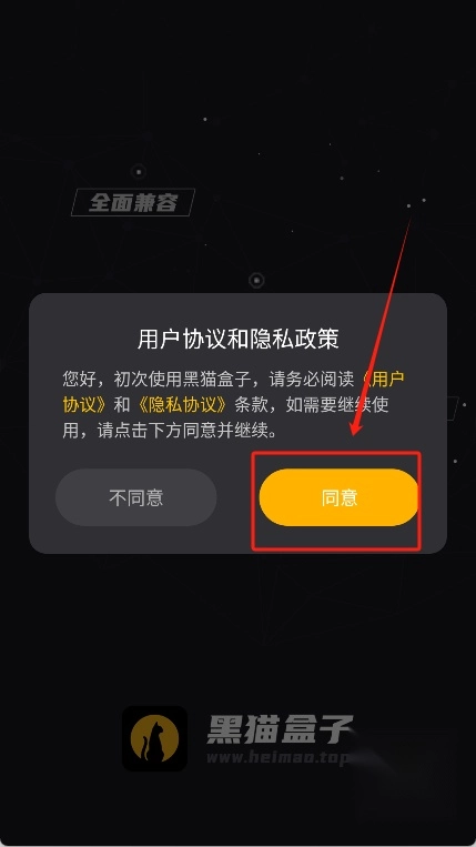 1、首先在魔趣网并安装黑猫虚拟机,点击“同意”继续接下来的操作