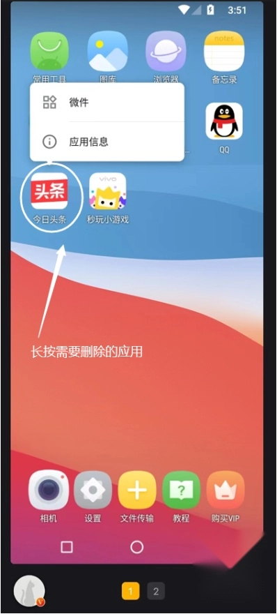 1、长按需要删除的应用程序。