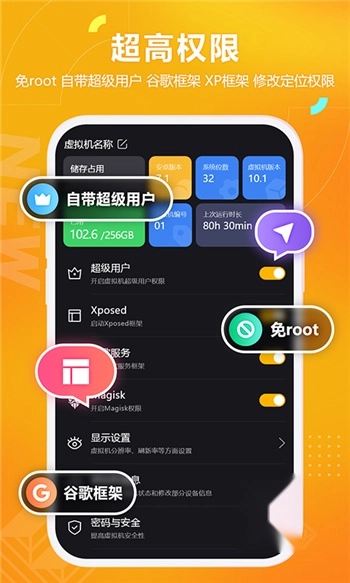 3、独立虚拟环境:创建独立的虚拟化环境,保障手机原生系统的稳定性。
